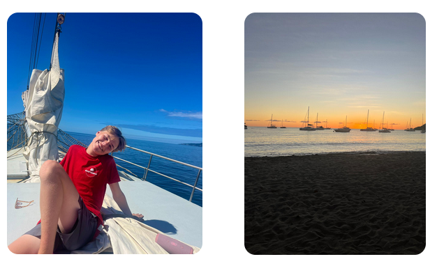 Na deze dag zeilde we snel door naar een baai naast Guadeloupe. Hier hebben we lekker in de zee gezwommen en die avond hebben we op een onbewoond eiland ‘’Goat Island’’ geslapen. Dit was wel echt heel leuk. We sliepen op handdoeken en in lakenzakken op het strand tussen de krabben. De dag erna zijn we aan land gegaan op het eiland Guadeloupe. Hier hebben we lekker geluncht, souvenirs gekocht en gewoon relaxed rondlopen. Dit was wel echt fijn, want op de andere eilanden was er overal best veel armoede maar hier echt totaal niet. En als laatste excursie hadden we een hike naar een heel leuk strand op Main Island Guadeloupe. Dit strand was mooi en had echt mega hoge golven, waar we lekker in gezwommen hebben. Ik heb al mijn school nu ook afgerond en de laatste week is echt in volle gang. Ik begin morgen met de ships take-over, als deckhand (matroos). Voor de functie heb ik in het Engels gepitched. En eigenlijk is het einde nu zo dichtbij, dit vind ik wel echt lastig.